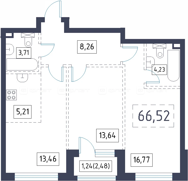 - 66.52/43.87/5.21 м²