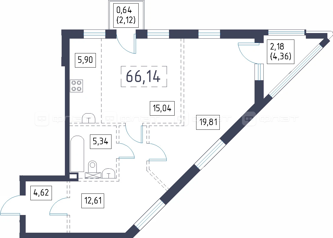 - 66.14/34.85/5.9 м²